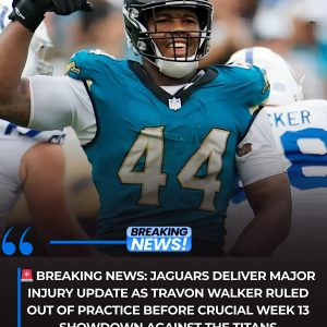 🚨 BREAKING NEWS: JAGUARS DELIVER MAJOR INJURY UPDATE AS TRAVON WALKER RULED OUT OF PRACTICE BEFORE CRUCIAL WEEK 13 SHOWDOWN AGAINST THE TITANS Jacksonville, FL — The…