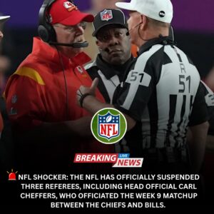 Kansas City, Missouri – November 4, 2025 The NFL has officially suspended the entire officiating crew led by veteran referee Carl Cheffers following the highly controversial Week…