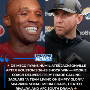đź’Ą DE MECO RYANS HUMILIATES JACKSONVILLE AFTER HOUSTON’S 36–29 SHOCK WIN — Rookie Coach Delivers Fiery Tirade Calling Jaguars “A TEAM LIVING ON EMPTY GLORY,” Sparking Social…