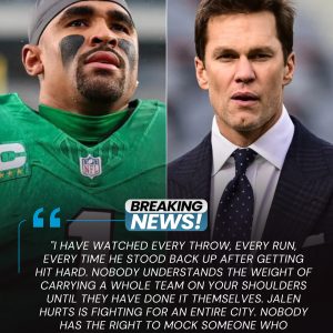 Philadelphia, Pennsylvania. Just ten minutes ago, Eagles Nation erupted when legendary quarterback Tom Brady appeared in the media with a powerful message defending Jalen Hurts. It was…