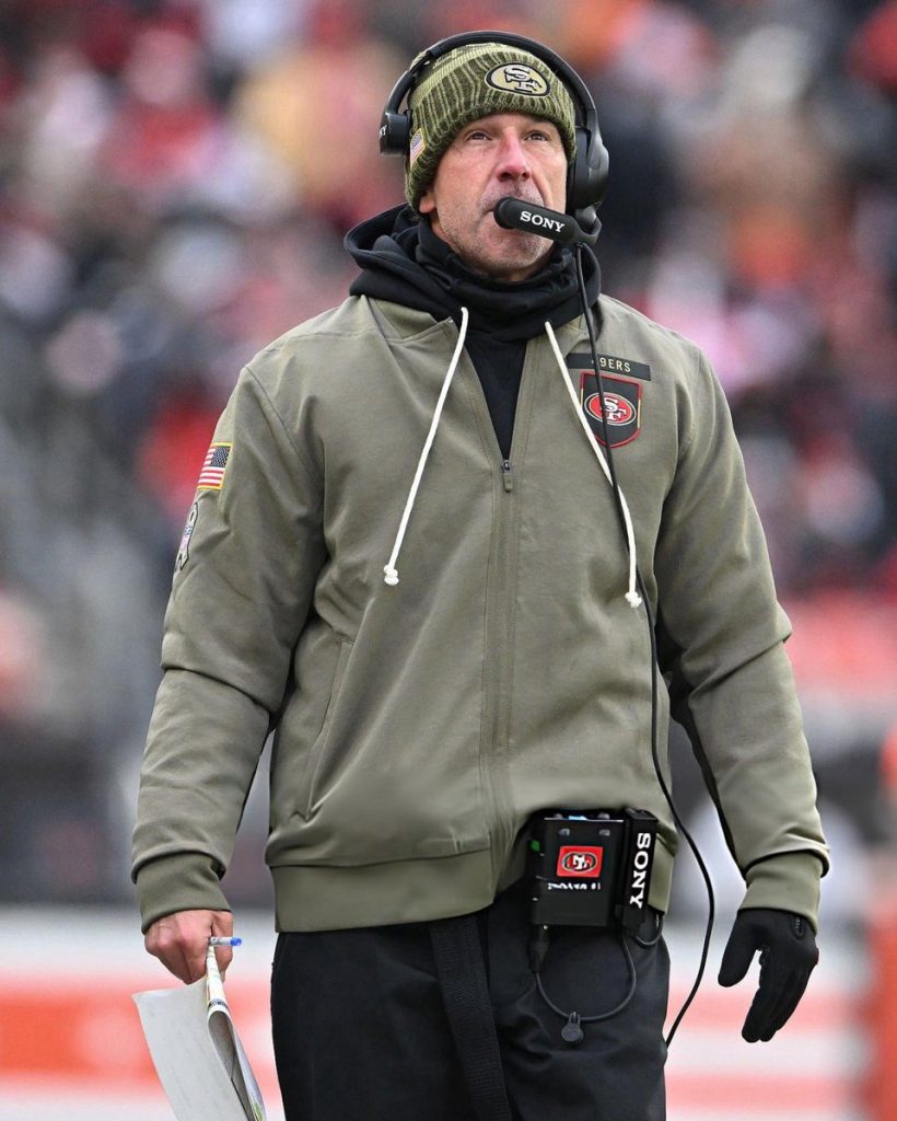 But when reporters gathered around Shanahan at midfield — soaked, shivering, and waiting for some technical breakdown — he didn’t talk about scheme. He didn’t talk about the weather. He didn’t talk about Purdy’s struggles or McCaffrey’s stamina. Instead, he took a deep breath, looked straight into the cameras with red, watery eyes, and delivered a message that rippled across Niners Nation within minutes.