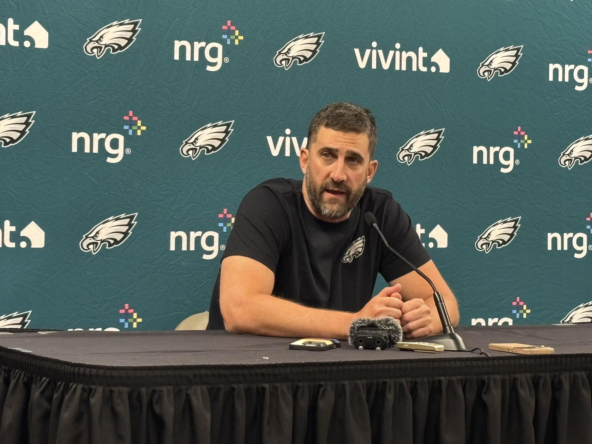 Reporters said the moment felt almost sacred. Sirianni’s eyes glistened, his voice cracking as he looked straight into the cameras. “To every Philly fan — you believed when no one else did. This win belongs to you. Always.” Within minutes, the clip was trending across every platform, amassing millions of views and countless emotional comments. It wasn’t just a message; it was a confession from a coach who wears his heart on his sleeve.