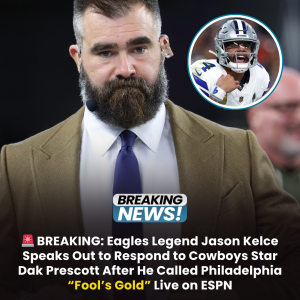 BREAKING: Eagles Legend Jason Kelce Speaks Out to Respond to Cowboys Star Dak Prescott After He Called Philadelphia “Fool’s Gold” and Claimed the Team Only “Beats Weak Opponents” Live on ESPN – And Prescott’s Subsequent Reaction Leaves Eagles Fans Thoroughly Satisfied. CBA