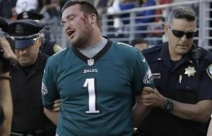 Shortly after the intense Eagles vs. Cowboys matchup at AT&T Stadium concluded, a disturbing video began circulating across social media, sending shockwaves through the entire Eagles community. The footage shows a man wearing an Eagles jersey verbally insulting a female fan, triggering a chaotic multi-person brawl in the stands. The outrage grew even stronger as fans realized the instigator was someone representing the iconic Midnight Green.