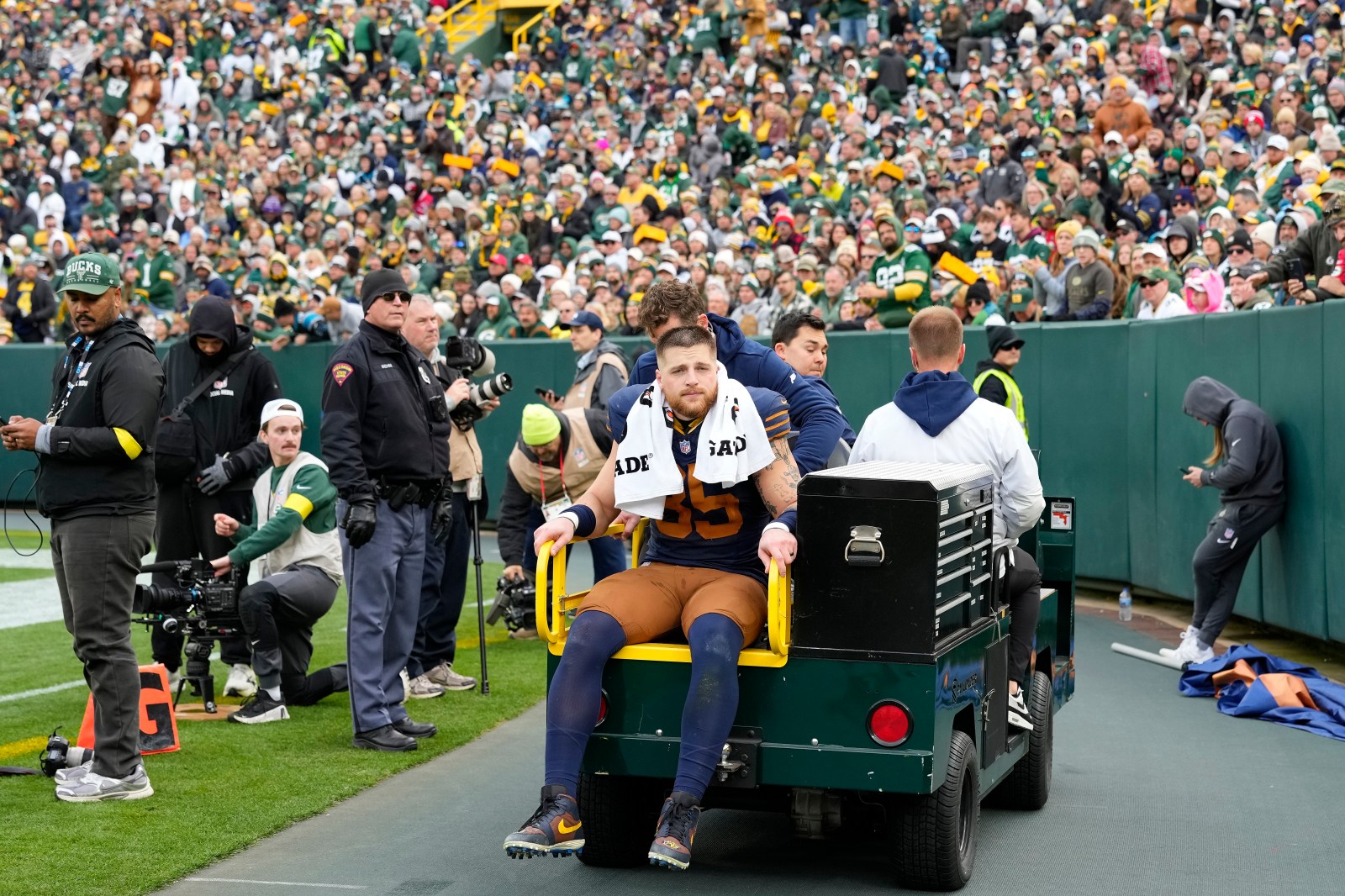 Inside the locker area, Kraft was still undergoing medical evaluation after suffering a