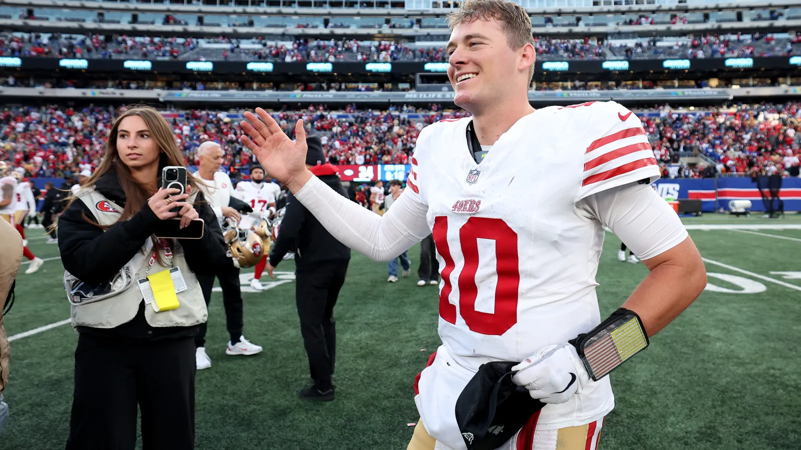 Yet the story didn’t end with Stafford’s words. Mac Jones, the 49ers’ rising star, responded with grace and class, refusing to downplay Stafford’s own accomplishments. In his postgame interview, Jones said, “I respect Stafford immensely. I’ve watched him for years, and to hear him say that is an honor. It motivates me to keep improving.” The mutual admiration between the two quarterbacks sparked waves of respect across the NFL, with players, coaches, and fans weighing in on the significance of this rare sportsmanship. Across the league, rival fans noted that moments like these — genuine recognition among elite competitors — remind everyone why football is more than just a game; it’s a community built on respect and rivalry alike.