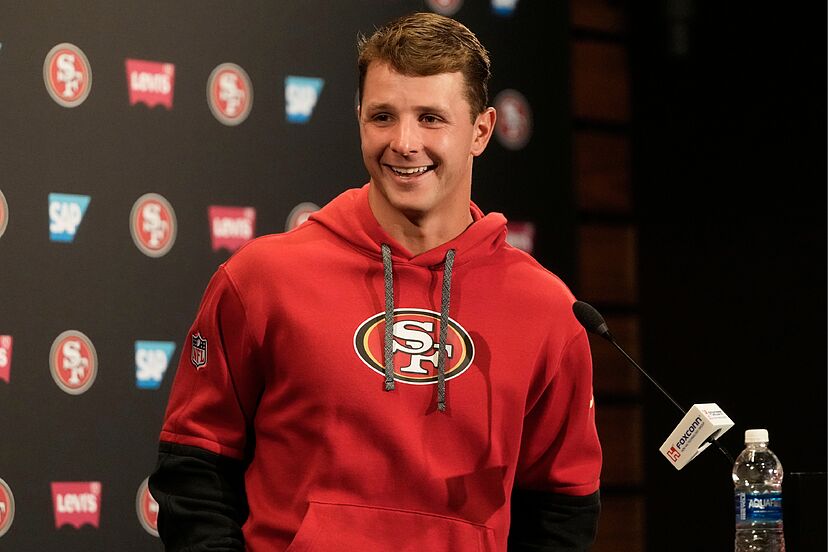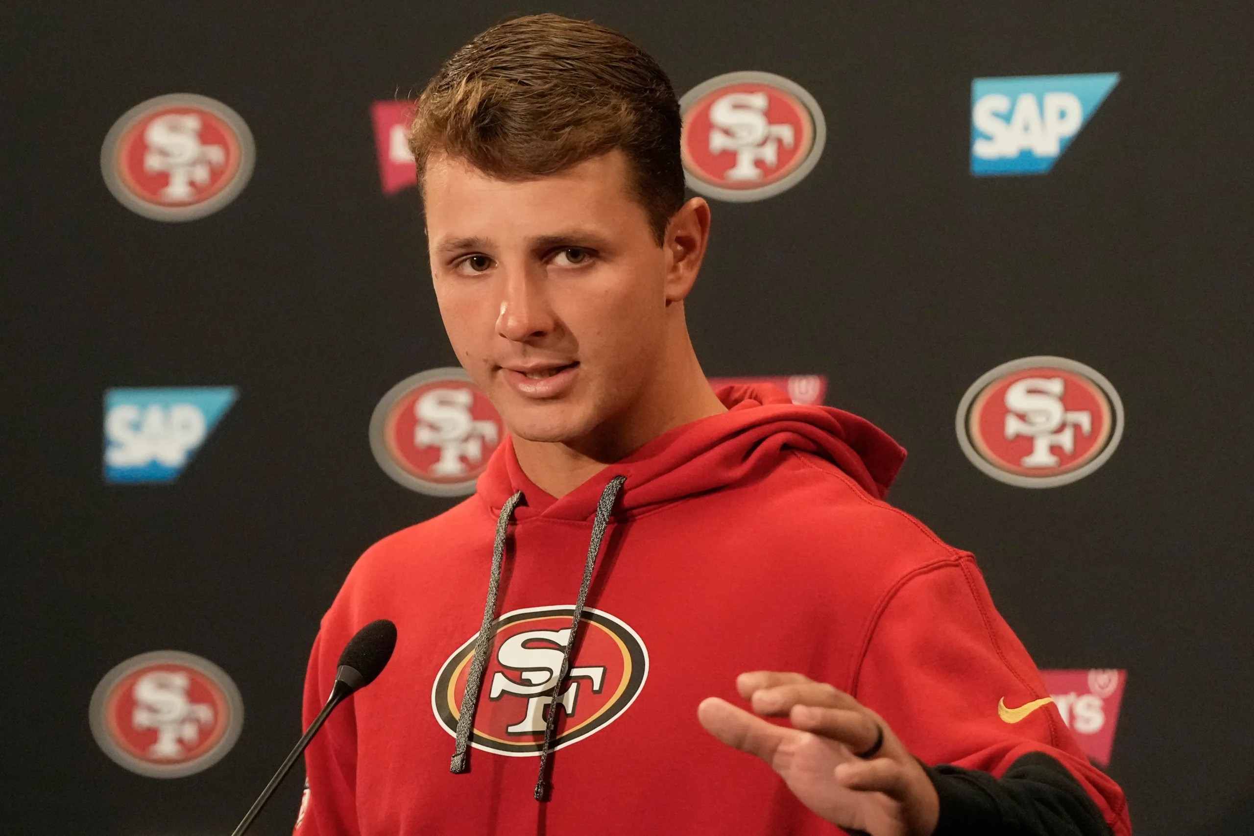 Standing ten feet away on the same dais, Brock Purdy heard every word. When it was his turn at the microphone, the usually mild-mannered quarterback snatched it like a wide receiver snagging a jump ball and fired back without hesitation. “Keep crying,” Purdy snapped. “We just beat you by 19 on your own field. Cry harder.”